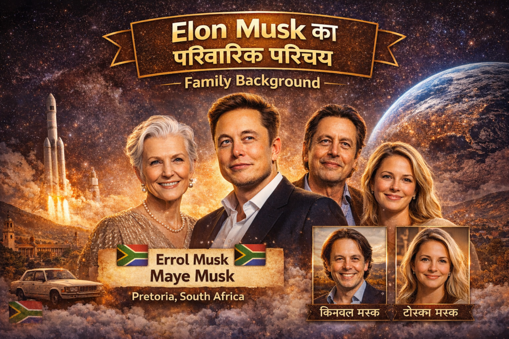Elon Musk (एलन मस्क) का जन्म 28 जून 1971 को Pretoria, South Africa में हुआ था। उनके पिता Errol Musk एक electrical engineer, property developer और pilot थे, जबकि उनकी माँ Maye Musk एक प्रसिद्ध model और nutritionist रही हैं। इस तरह उनका परिवार बौद्धिक रूप से मजबूत (intellectually strong) था, जहाँ science, logic और independent thinking को महत्व दिया जाता था।