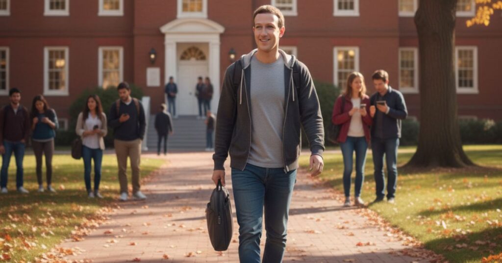 मार्क जुकरबर्ग ने Harvard University में दाखिला लिया। वहाँ उसने Computer Science और Psychology पढ़ना शुरू किया। यही combination आगे चलकर Facebook की नींव बना — technology + human behavior।