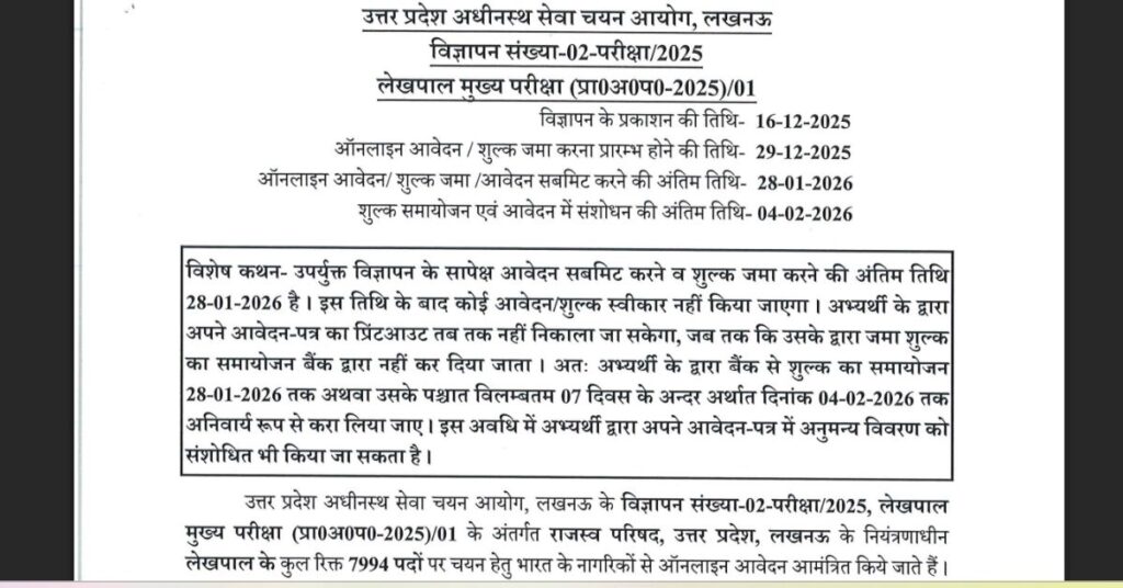 UP Lekhpal Recruitment 2025-26 – संक्षिप्त विवरण